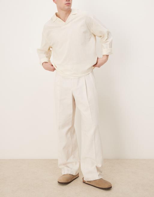 ASOS DESIGN pull on smart wide leg trouserswith front pleat in beige texture with elasticated waist