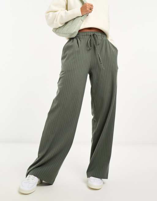 ASOS DESIGN pull on trouser in khaki stripe