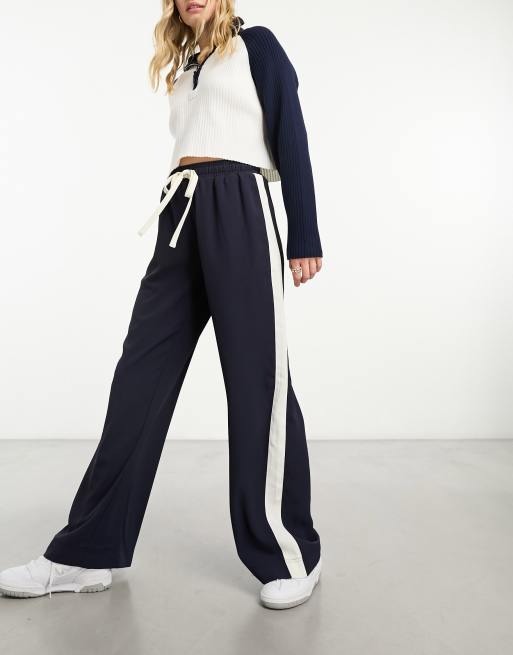 ASOS DESIGN pull on trouser with contrast panel in navy