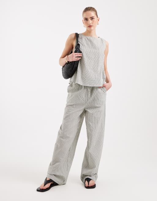 ASOS DESIGN pull on trousers co-ord in cream stripe