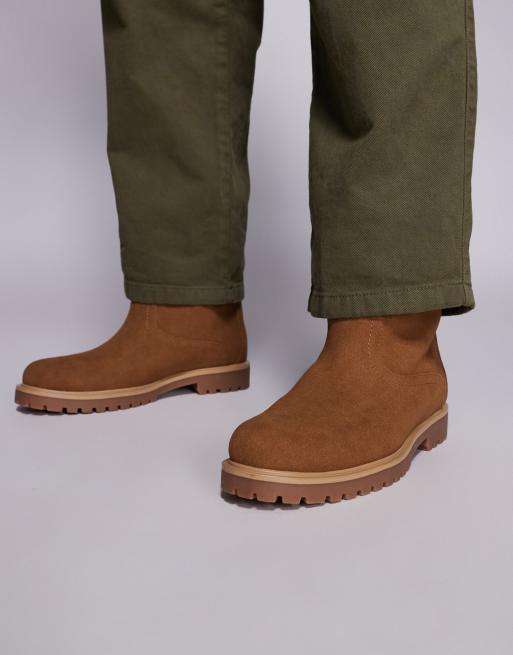 ASOS DESIGN pull on worker boots in tan