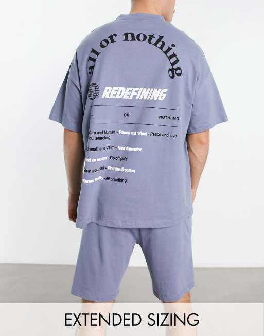 ASOS DESIGN pyjama set with t-shirt and shorts in grey with text print