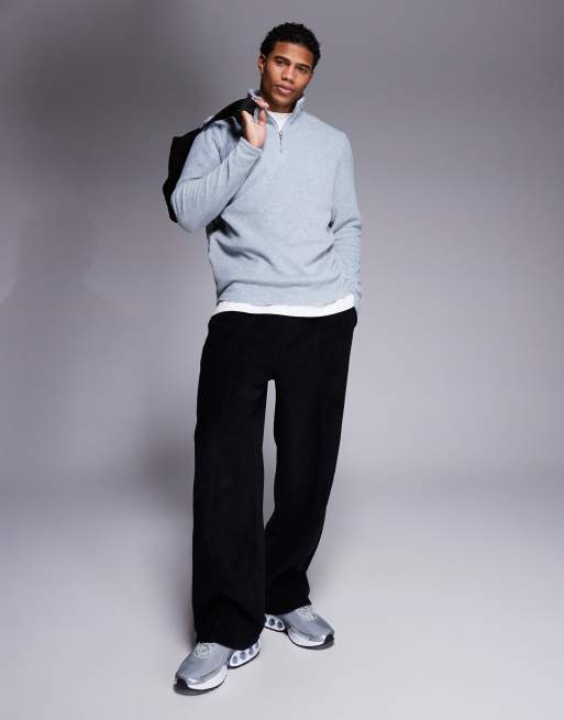 ASOS DESIGN quarter zip fleece sweatshirt in grey marl - GREY