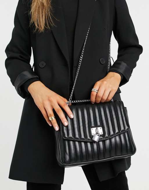 ASOS DESIGN quilted crossbody bag with padlock detail in black