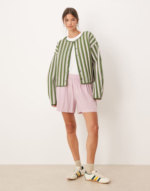 ASOS DESIGN quilted stripe jacket with embroidery detail in pink and green