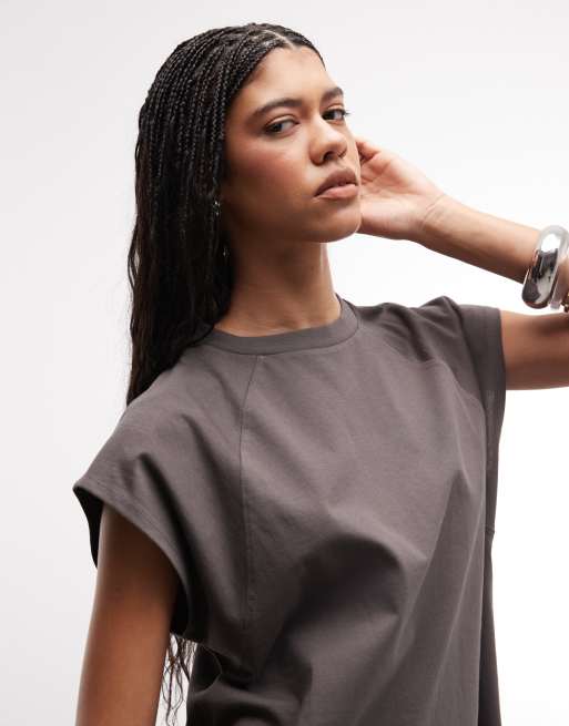 ASOS DESIGN raglan sleeve heavyweight boxy crop tee in charcoal
