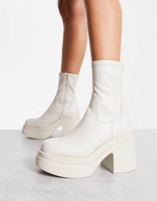 ASOS DESIGN Raven chunky mid-heeled sock boots in white