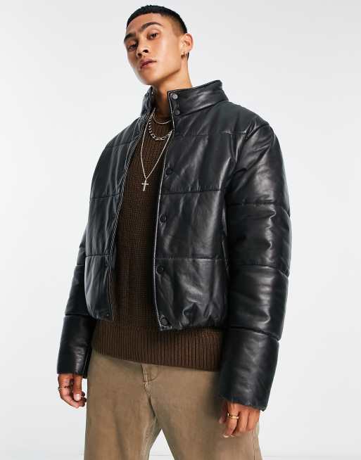 Body: 100% Leather, Filling: 100% Polyester, Lining: 100% Polyester, Rib: 97% Cotton, 3% Elastane.