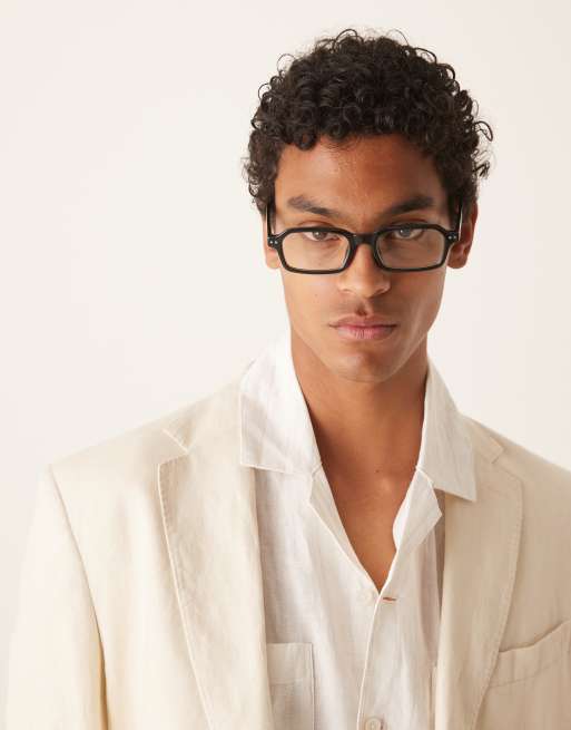 ASOS DESIGN rectangle frame glasses in black with clear lens