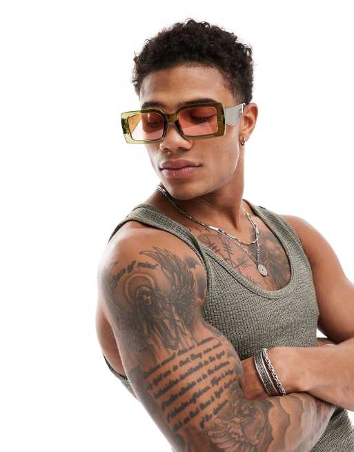 ASOS DESIGN rectangle sunglasses in green