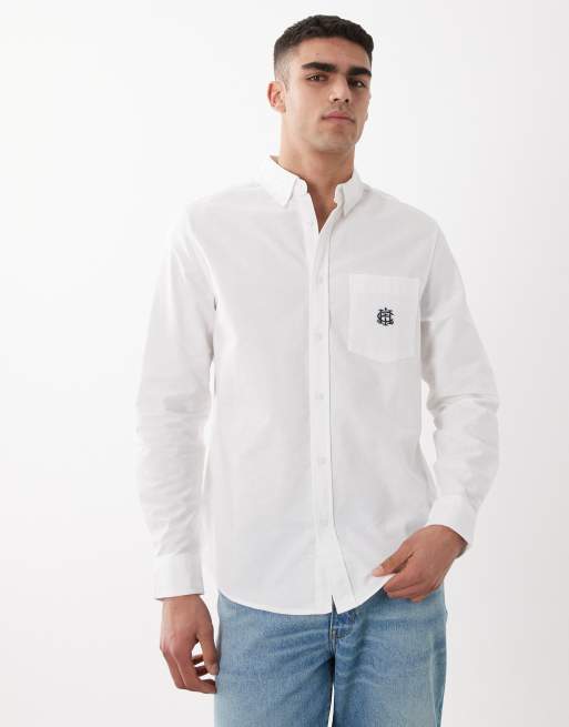 ASOS DESIGN regular fit oxford shirt with chest embroidery in white