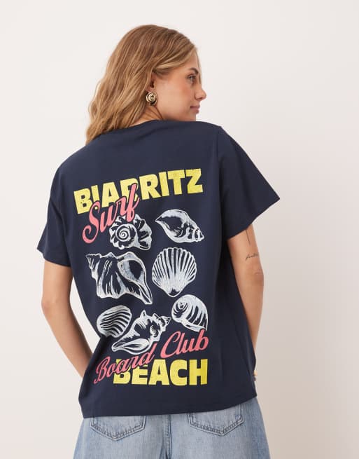 ASOS DESIGN regular fit t-shirt with biarritz shell graphic in navy