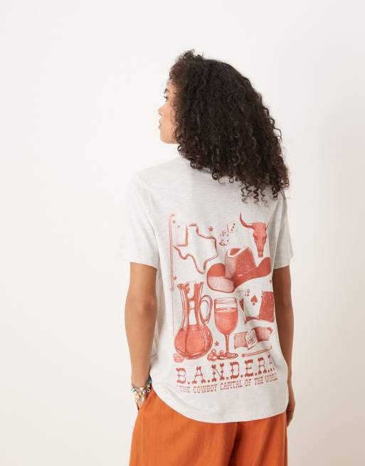 ASOS DESIGN regular fit t-shirt with rodeo cowboy graphic in ice marl