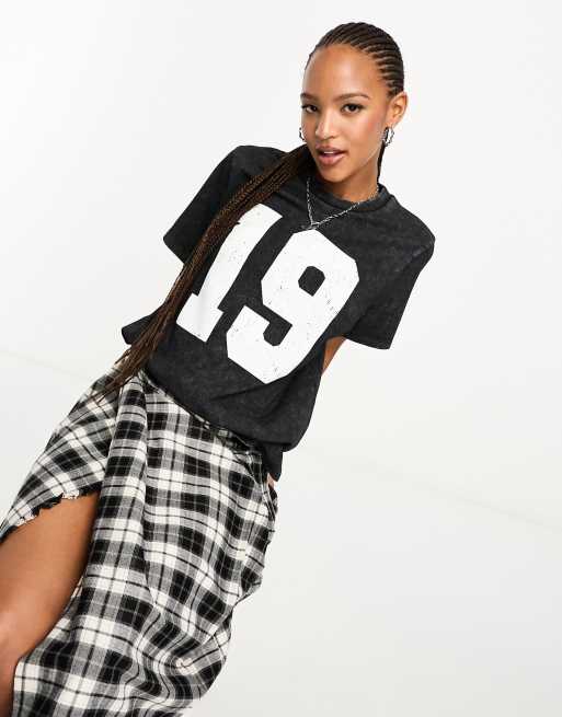 ASOS DESIGN regular fit tee with number 19 graphic in washed black