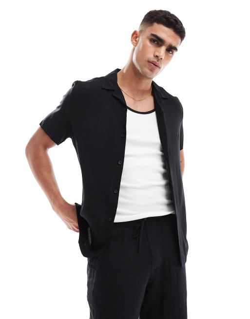 ASOS DESIGN regular fit viscose shirt with revere collar in black