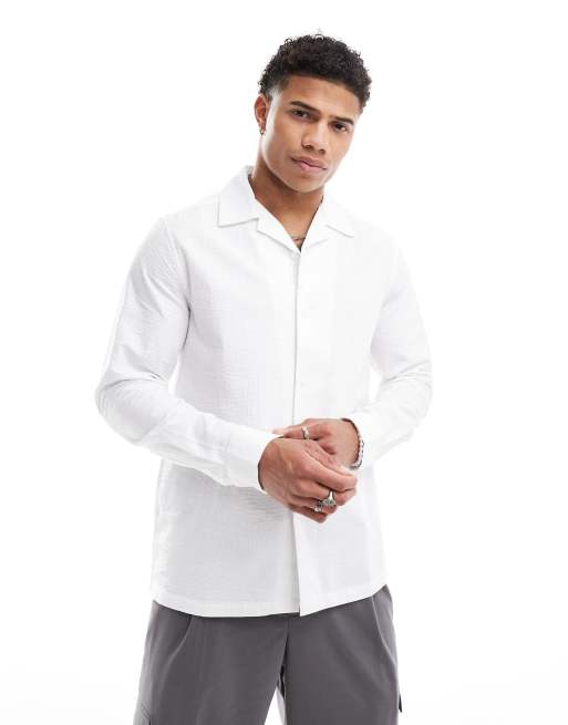 ASOS DESIGN regular seersucker shirt with wide revere collar in white