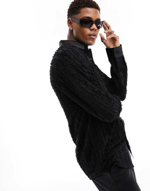 ASOS DESIGN regular shirt in textured stripe in black