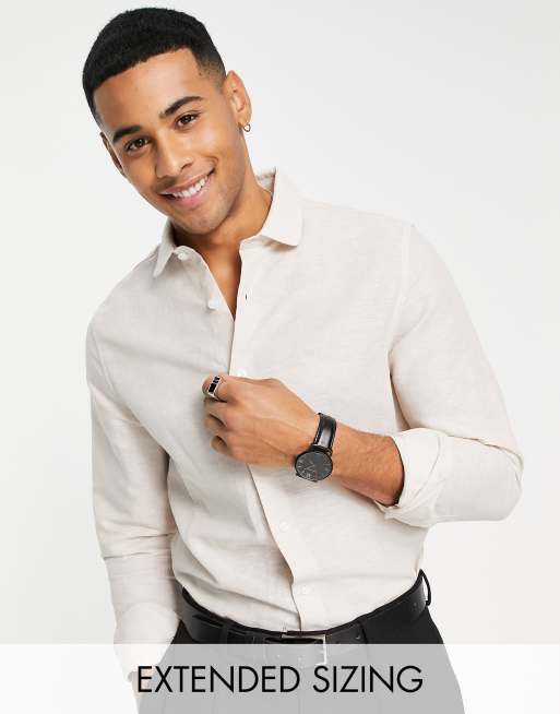 ASOS DESIGN regular smart linen shirt with penny collar in ecru