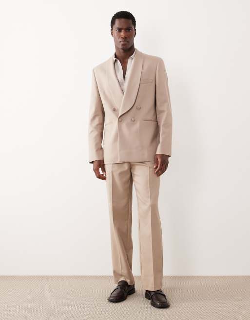 ASOS DESIGN regular tuxedo in stone contrast twill