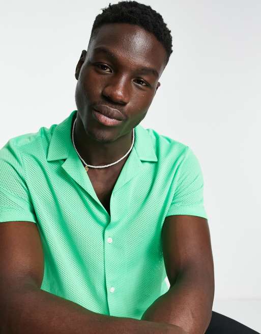 ASOS DESIGN relaxed airtex shirt in neon green