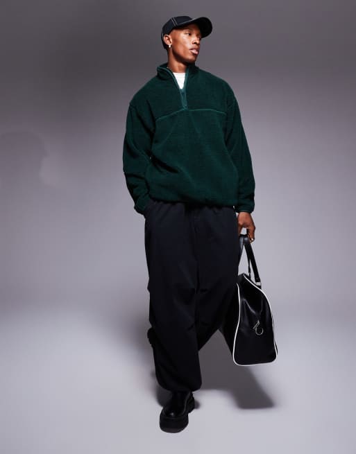 ASOS DESIGN relaxed borg quarter zip sweatshirt in dark green - DGREEN