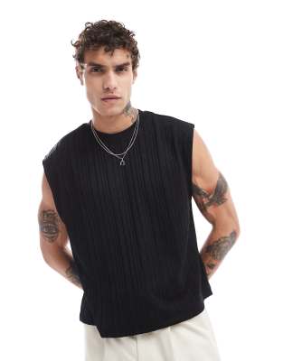 ASOS DESIGN relaxed boxy heavyweight tank in black rib