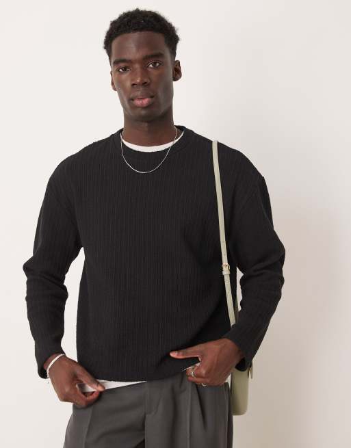 ASOS DESIGN relaxed boxy lightweight knit look jumper in black