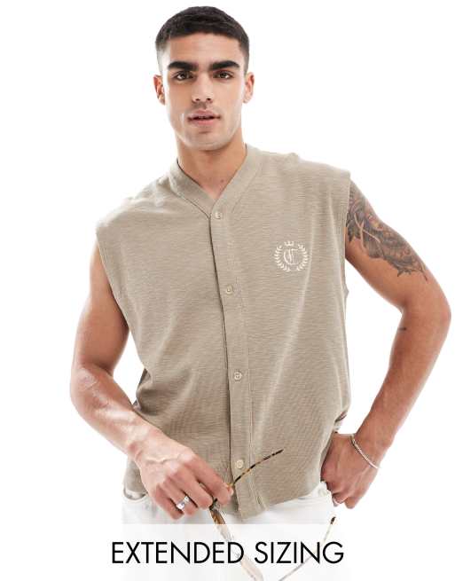 ASOS DESIGN relaxed button through vest with chest embroidery