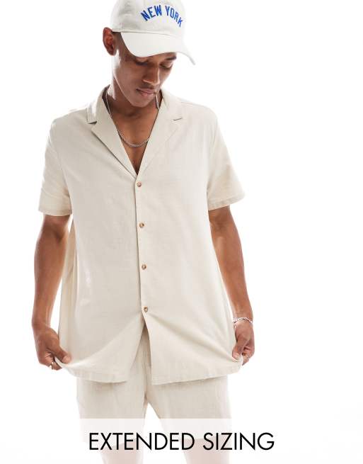 ASOS DESIGN relaxed deep revere linen shirt in stone