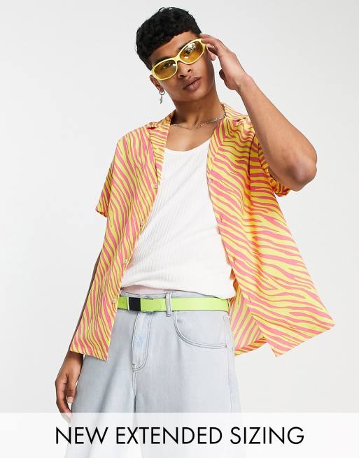 ASOS DESIGN relaxed deep revere shirt in neon yellow and pink zebra print