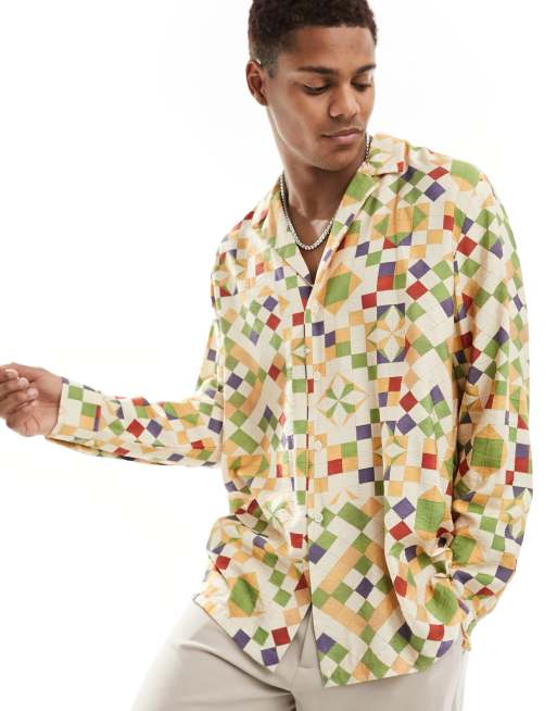 ASOS DESIGN relaxed deep revere textured shirt in patchwork quilt print