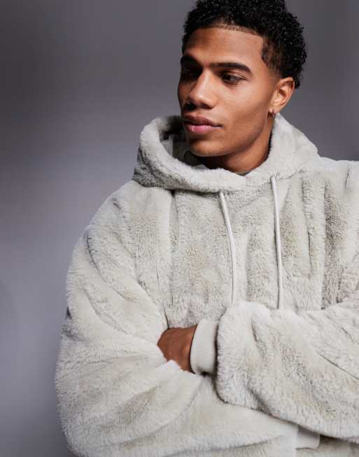 ASOS DESIGN relaxed faux fur hoodie in beige - BEIGE