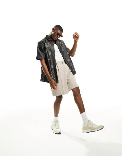 ASOS DESIGN relaxed faux leather shirt in black with bandana cut out detail