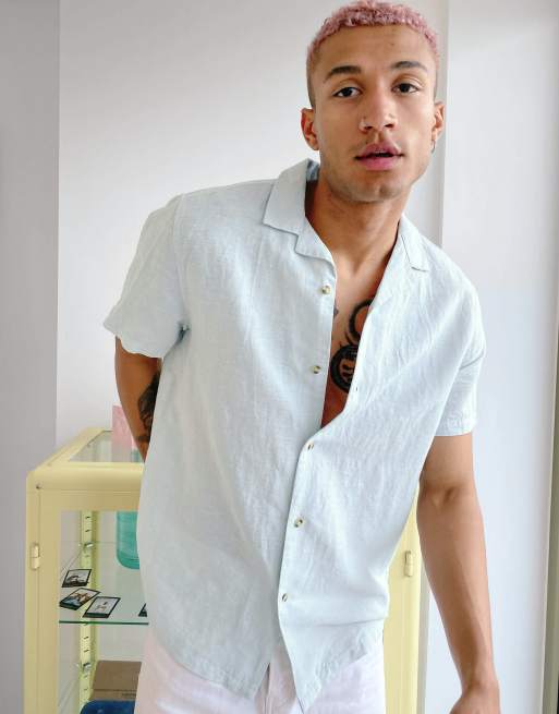 ASOS DESIGN relaxed fit linen shirt with revere collar in mint