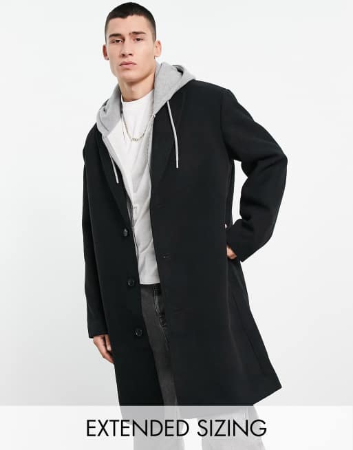 ASOS DESIGN relaxed fit longline wool mix overcoat in black