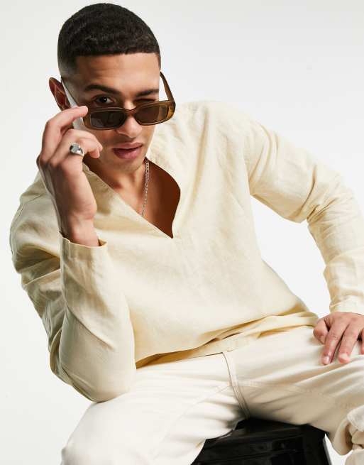 ASOS DESIGN relaxed fit overhead linen shirt in light yellow