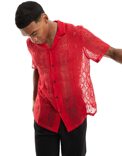 ASOS DESIGN relaxed fit revere shirt in red snake burnout