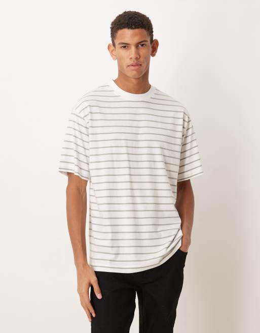 ASOS DESIGN relaxed fit t-shirt in white and grey stripe