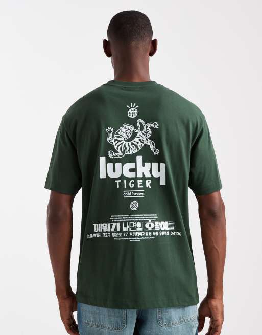 ASOS DESIGN relaxed fit t-shirt with souvenir print in dark green