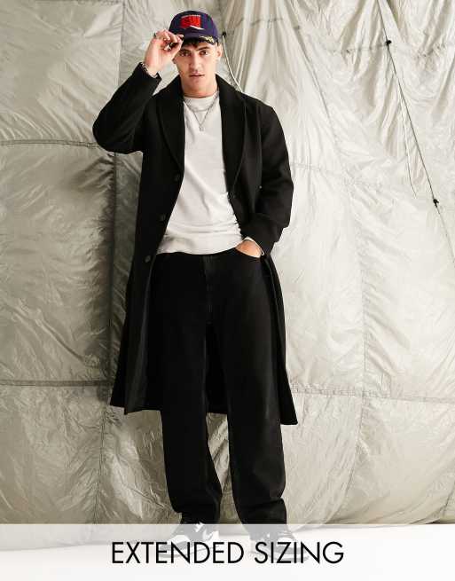 ASOS DESIGN relaxed fit wool look overcoat in black
