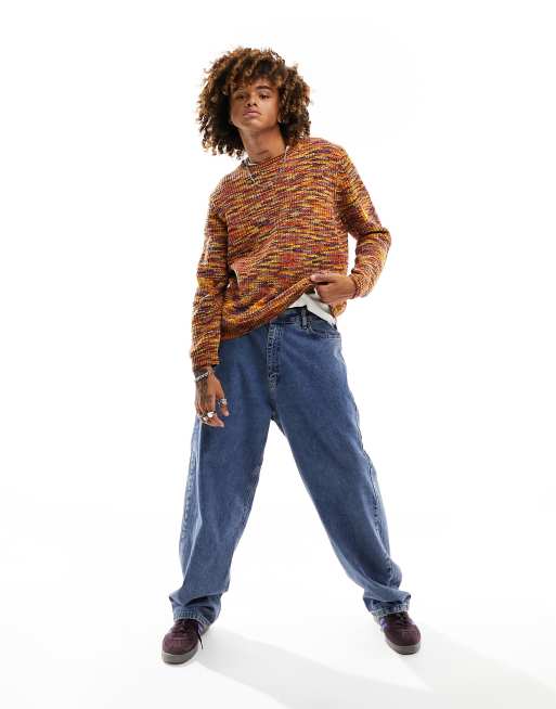ASOS DESIGN relaxed knitted chenille stripe jumper tan