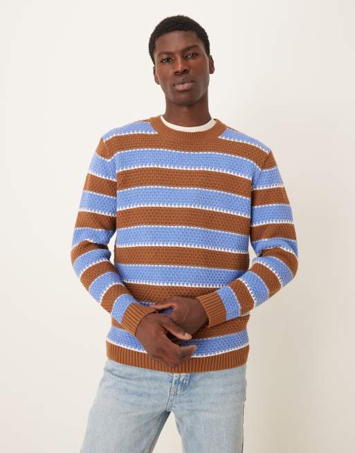 ASOS DESIGN relaxed knitted crew neck stripe jumper in navy