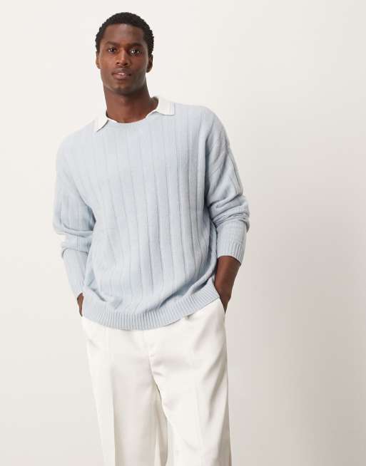 ASOS DESIGN relaxed knitted lambswool wide rib jumper in light blue