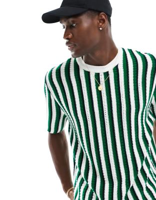 ASOS DESIGN relaxed knitted t-shirt in green textured stripe.