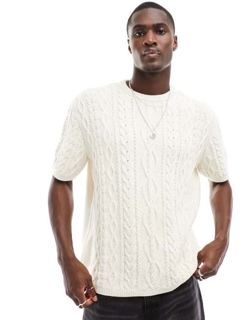 ASOS DESIGN relaxed knitted t-shirt in slubby cable in ecru