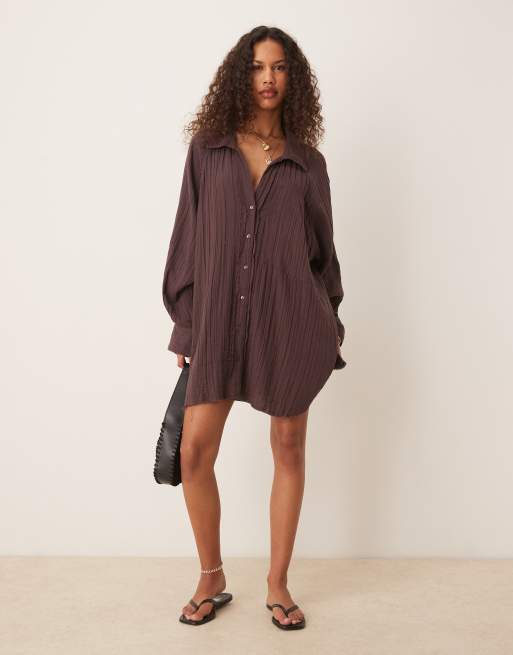 ASOS DESIGN relaxed laundered shirt mini dress in washed chocolate