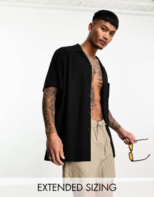 ASOS DESIGN relaxed linen shirt in black