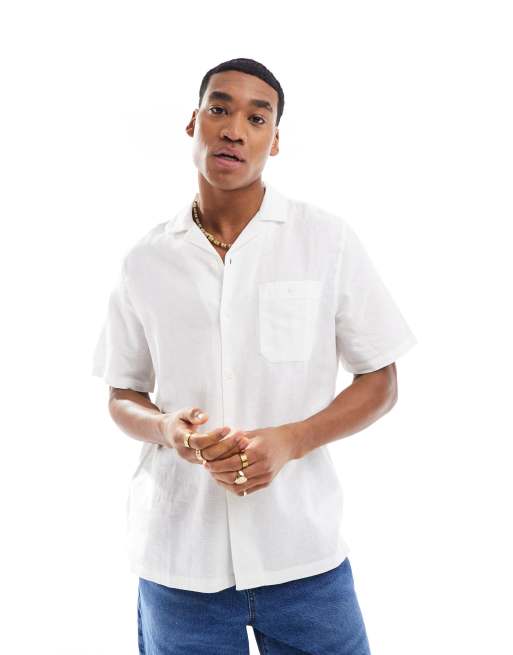 ASOS DESIGN relaxed linen shirt with revere collar in white