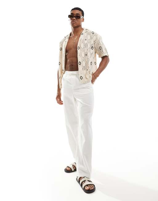 ASOS DESIGN relaxed linen trouser in white with elasticated waist