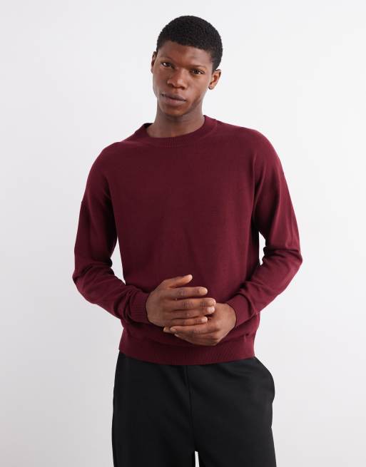 ASOS DESIGN relaxed long sleeve knitted crew neck t-shirt in burgundy